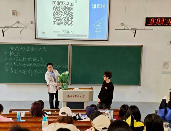 课堂之上,感恩氛围同样浓厚。在预防医学、公共事业管理等专业的各年级课堂上,同学们延续着这份敬意—课前,学生代表向任课教师献上鲜花,用一句饱含深情的“祝您教师节快乐”,为精彩纷呈的课程拉开序幕。老师们始终以匠心打磨教学细节:课前精心设计教学方案、梳理知识脉络,课上用生动的讲解点亮学生的智慧之光,课后耐心解答疑问、助力学生成长。这份在教学科研一线的坚守与付出,在这个略带凉意的秋日里,温暖了每一位学子的心田。与此同时,大一新生也向陪伴自己开启大学生活的军训教官送上鲜花与祝福,将尊师重教的情怀延伸至校园生活的每一个重要场景。