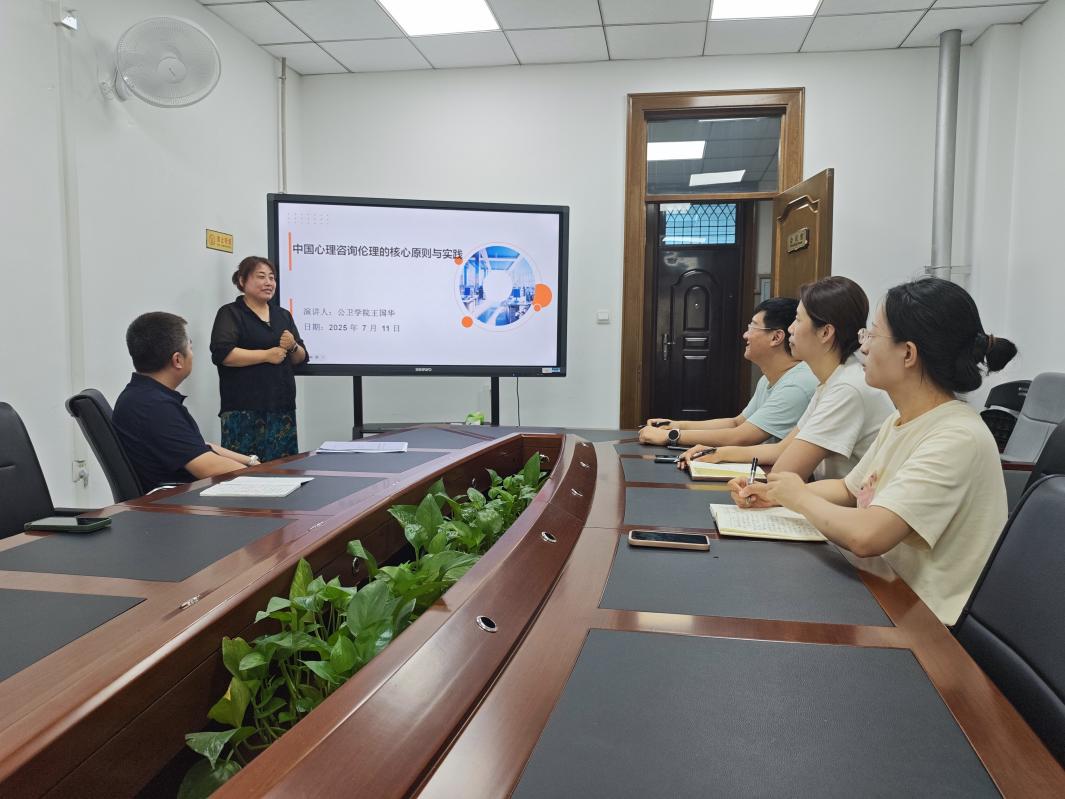 王国华率先以《中国心理咨询伦理的核心原则与实践》为题,深入解析《中国心理学会临床与咨询心理学工作伦理守则 (第二版)》的核心框架,并系统阐释其与学生日常工作的内在关联。她强调,善行、责任、诚信、公正、尊重五大原则不仅是心理咨询的伦理基石,更应成为学生工作的基本遵循 —— 师生关系需以学生发展为根本目的,严守职业界限,尊重学生个性化价值观;工作中要充分保障学生对学校规章的知情权与申诉权,像咨询中的 “知情同意” 般透明规范;对学生隐私需保护,在自伤、违法等危及安全的特殊情况启动上报机制,同时在日常工作中着眼于学生工作大局,从心理咨询伦理中汲取经验,并通过持续学习提升专业胜任力,以应对复杂工作场景中的伦理挑战。