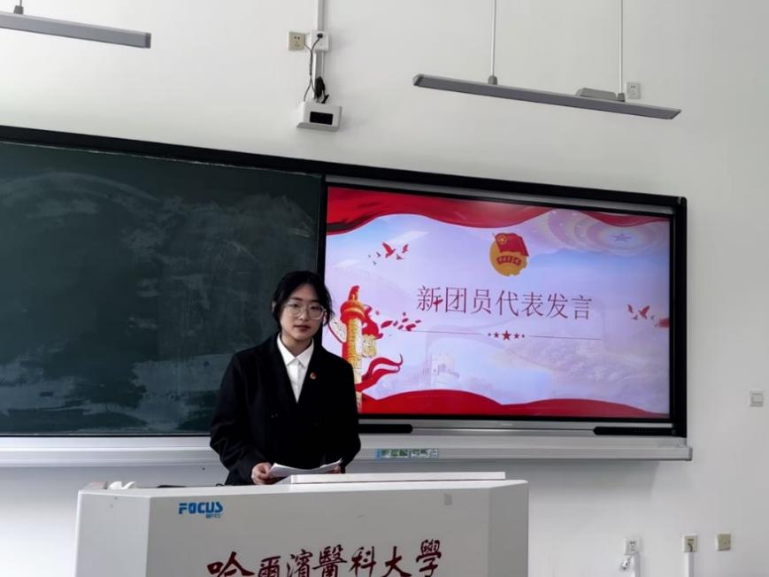 新团员代表张佳璐的发言,道出了公卫学子的共同心声:作为新时代青年团员,肩负着光荣使命,应践行入团初心,坚定信念跟党走。她呼吁大家以奋斗书写无愧于时代和共青团光荣称号的青春篇章。
