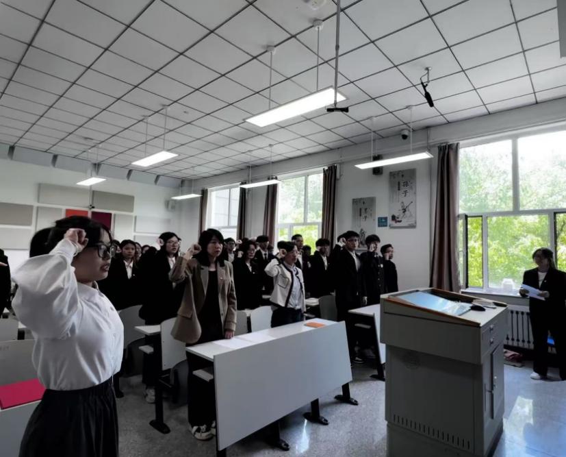 紧接着,在领誓人王陈媛同学的带领下,全体新老团员右手握拳,面向团旗庄严宣誓:“我志愿加入中国共产主义青年团......为共产主义事业而奋斗!”誓言铿锵有力,响彻会场,每一句都凝结着青春向团的赤诚之心。