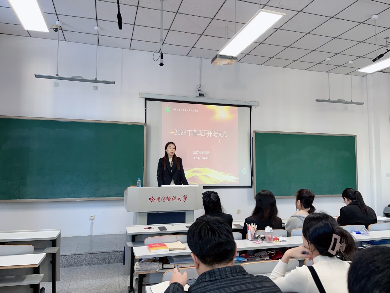 为充分贯彻党的二十大精神,进一步加强对学院青年的理论武装和实践培养,着力培养一批具有较高思想政治素养、符合时代要求的年轻马克思主义者,公共卫生学院团委在学院党委和学校团委的领导与支持下,于11月20日在公卫32号教室举办“公共卫生学院·卫生管理学院、心理科学中心2023年度‘青年马克思主义者培养工程’第二期培训班”开班仪式。学院党委副书记曲乃强、副处级辅导员王国华、卫生管理学院公共管理研究生党总支书记崔宇、公共管理研究生团总支书记严丹、心理科学中心研究生辅导员刘璇、公卫研究生辅导员孙小楠、卫管研究生辅导员董威兰以及学院第二期“青马”班学员出席了此次开班仪式。开班式由学院团委书记王茜主持。