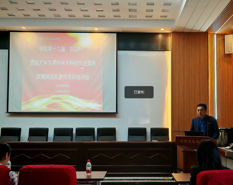 为培养和提高学院广大青年的科研能力、实践能力和创新意识,进一步做好2025年“挑战杯”竞赛省赛的备赛工作,提高我院参赛作品整体质量,12月12日下午,学院团委在二楼大会议室举办第十九届“挑战杯”全国大学生课外学术科技作品竞赛政策解读及宣传启动培训会。特邀学校团委副书记马文超和药学院“挑战杯”国赛行星级项目2项获得者项目指导教师王琦为学院师生进行培训指导。学院党委副书记曲乃强,学院“挑战杯”竞赛指导教师及参赛学生代表70余人参会。会议由学院团委书记王茜主持。
