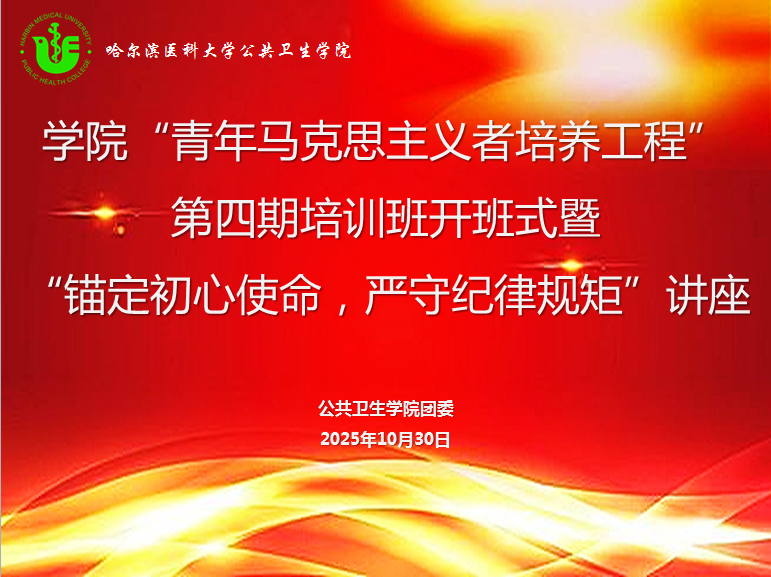 为培养和造就一支理想信念坚定、能力作风过硬、素质全面发展的大学生骨干队伍,公共卫生学院团委在学院党委和学校团委的领导与支持下,于10月30日中午在学院举办“青年马克思主义者培养工程”第四期培训班暨“锚定初心使命,严守纪律规矩”专题讲座。学院党委副书记曲乃强、学生年级主任曹璨、研究生年级副主任孙小楠、公共管理研究生团总支书记董威兰以及第四期青马班学员和学院青年等60余人参加了此次讲座。开班式由学院团委书记王茜主持。