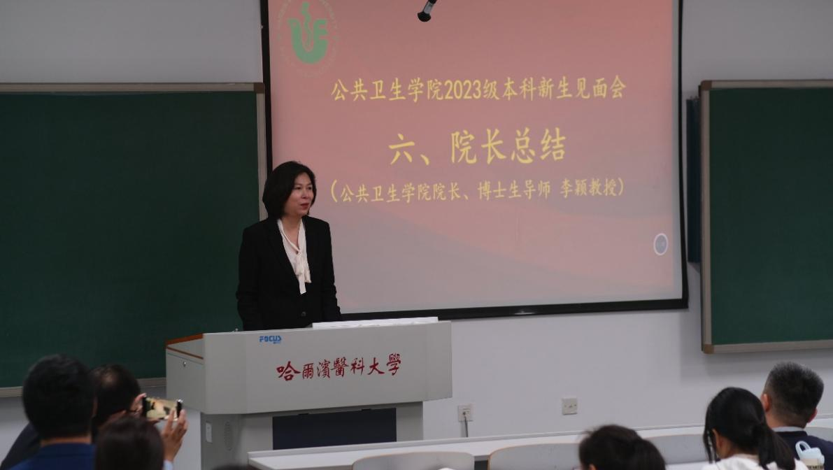 最后,李颖做了总结讲话。她对2023级新生们的到来表示热烈欢迎和祝贺,并深情回忆了自己的大学生涯。她指出,大学阶段需培养全方位的能力,鼓励同学们要奋发向上,以积极的态度迎接大学的各种挑战;要不断提升自己的专业本领,树立正确高尚的人生观、价值观,确立远大的人生目标,勤勉励学,成为德才兼备、具有创新精神的高素质公共卫生人才。