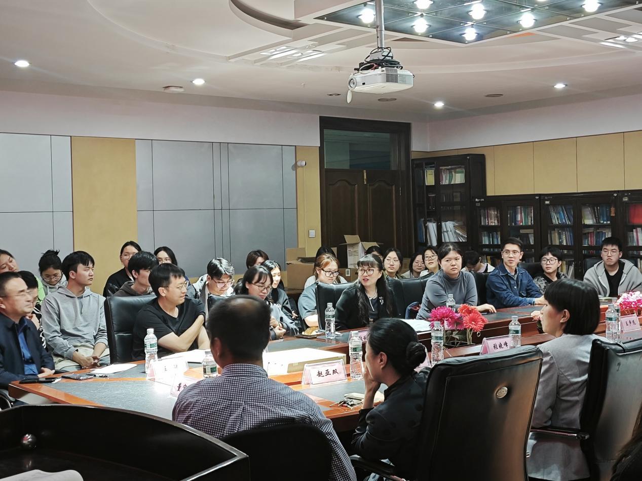 参加此次座谈会的领导与老师有公共卫生学院副院长、博士研究生导师田懋一教授,营养与食品卫生教研室主任、博士研究生导师牛玉存教授,流行病学教研室主任、博士研究生导师赵亚双教授,儿少卫生与妇幼保健学教研室副主任、博士研究生导师孙彩虹教授,卫生统计学教研室副主任、博士研究生导师张秋菊教授,卫生毒理学教研室副主任、博士研究生导师张晓峰教授,环境卫生学实验室主任、硕士研究生导师王骋教授,劳动卫生与职业病学实验室副主任、硕士研究生导师王声远副教授,研究生科科长、副处级辅导员王琪研究员,研究生科主任科员董宏伟研究员。同时,我们还邀请到硕博研究生吴环宇、王柳滢、周莹、梁金玉、姚慧鑫同学以及2024届预防医学专业毕业生。