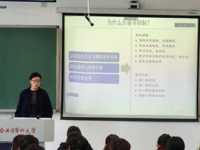 教务科科长靖雪妍分别从开展导师制的原因、目的、实施对象、激励办法等四方面进行简要介绍,并就本科生导师制实施的组织与管理以及本科生导师的定位、职责等方面进行了详细讲解,充分鼓励广大同学认真参加。