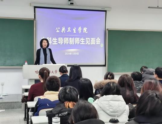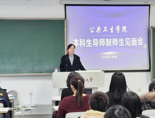 为加强一流本科专业建设,提升预防医学专业人才培养质量,2024年12月9日,公共卫生学院召开本科生导师制师生见面会,学院院长李颖、副院长王帆、教研室主任、学生年级、教务科及2023、2024级预防医学专业同学出席本次会议,会议由王帆副院长主持。