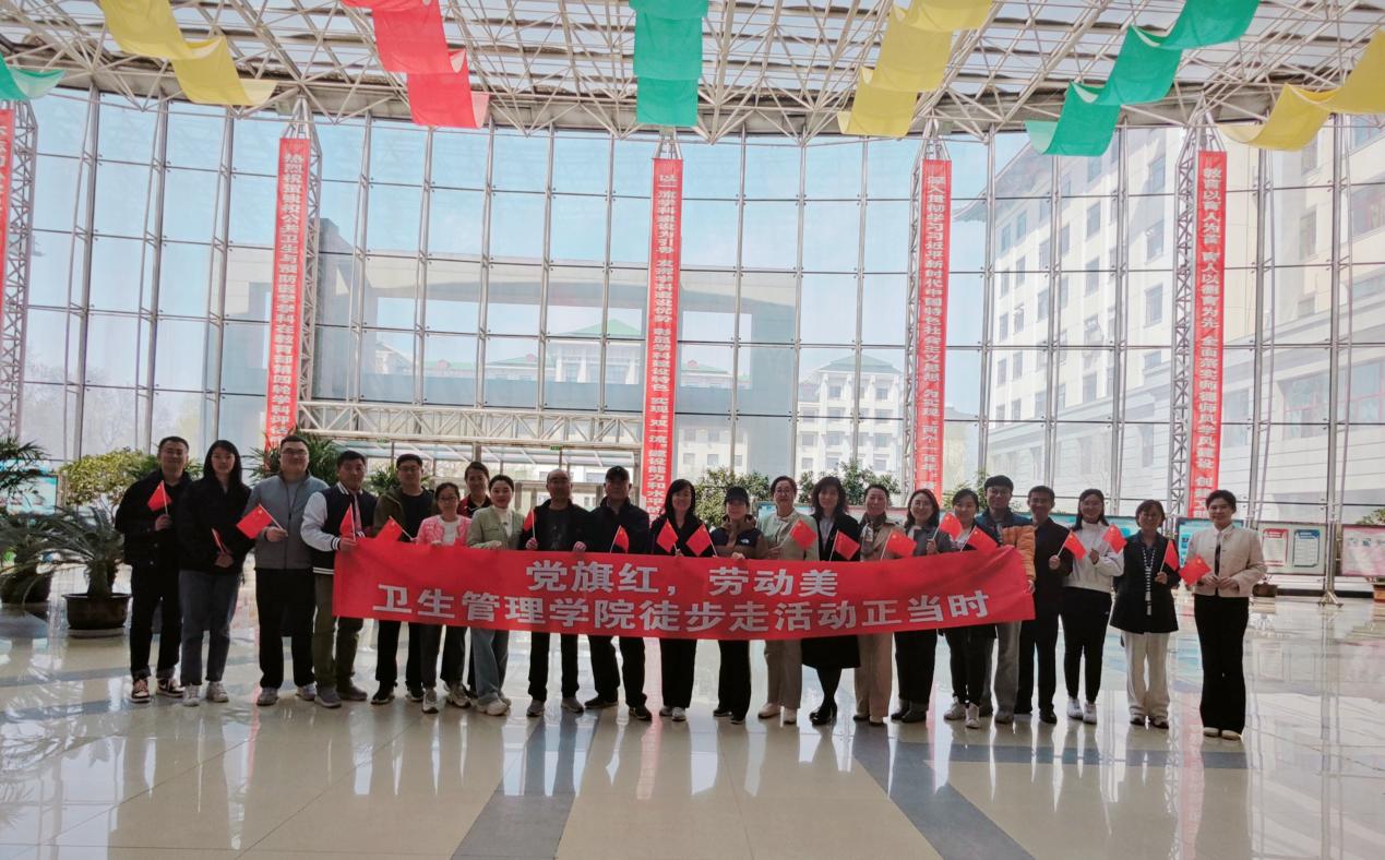 公共卫生学院和卫生管理学院近百名教职工参加了本次活动。徒步起点设置在公共卫生学院门前,途经公共卫生学院、生理学馆、外语学馆、基础医学院、水房、解剖学馆,徒步沿校园绕行。活动中,全院教职工身着运动服,高举爱国旗帜,在美丽的校园中健步前行,大家精神饱满,步伐坚定,在晴好的阳光下感受春风,在春风的环绕里凝聚力量。