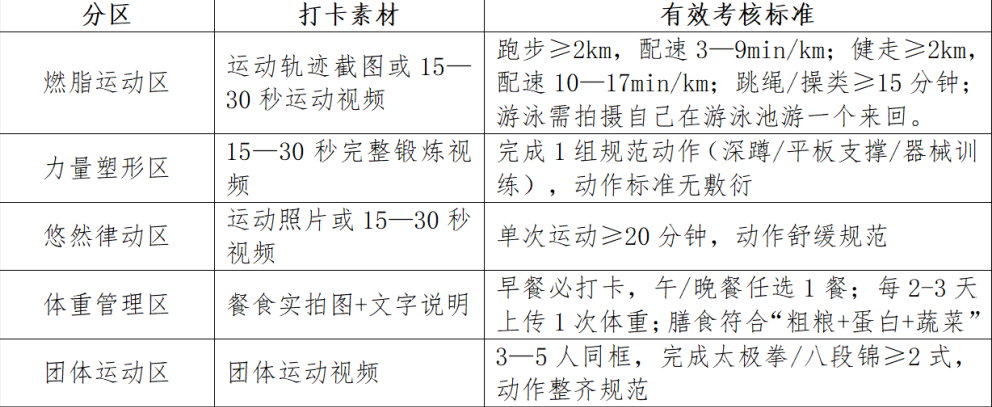 统一平台:今日水印相机APP(打卡必备),运动记录可搭配Keep、悦跑圈,加入QQ群→扫码进打卡团队→每日按分区提交对应素材→后台自动统计
