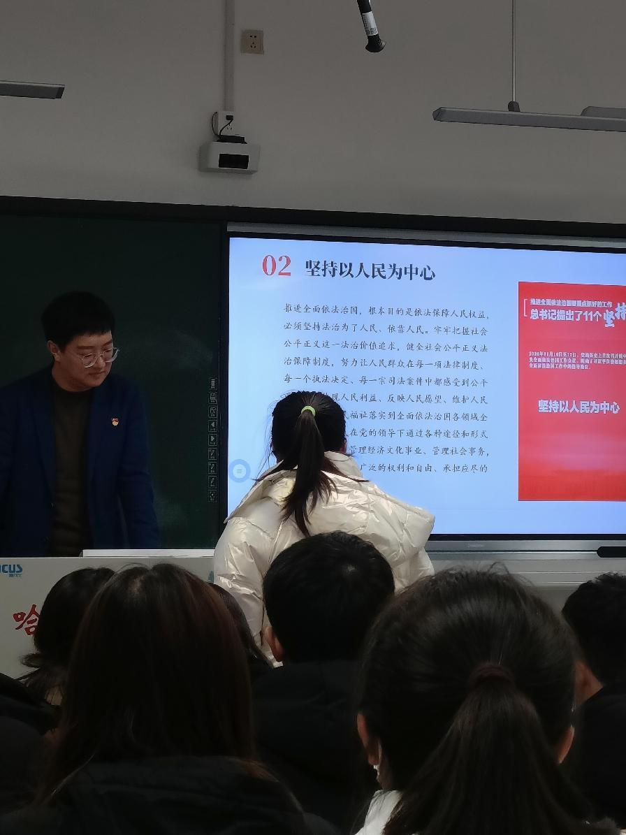 其次,公共卫生学院本科年级第二党支部开展了以 “深入学习习近平法治思想” 为主题的党课学习活动,由党支部书记张程老师主讲。张程老师详细指出了习近平法治思想中,“十一个坚持”所包括的内容,强调了坚持党对全面依法治国的领导,以人民为中心,中国特色社会主义法治道路等十一条的主要意义。通过本次党课学习,同学们对于宪法相关理论有了更深层次的认识和把握,同时在场学习的同学们表示要用全心全意为人民服务的热忱之心,结合对宪法知识的不断学习,投身于强国有我复兴中华的伟大事业中!