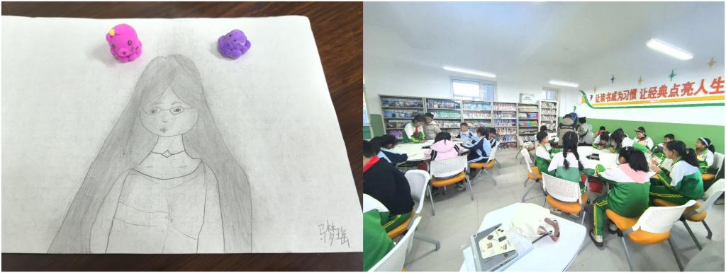 学生阅览图书、学生为我画的画像