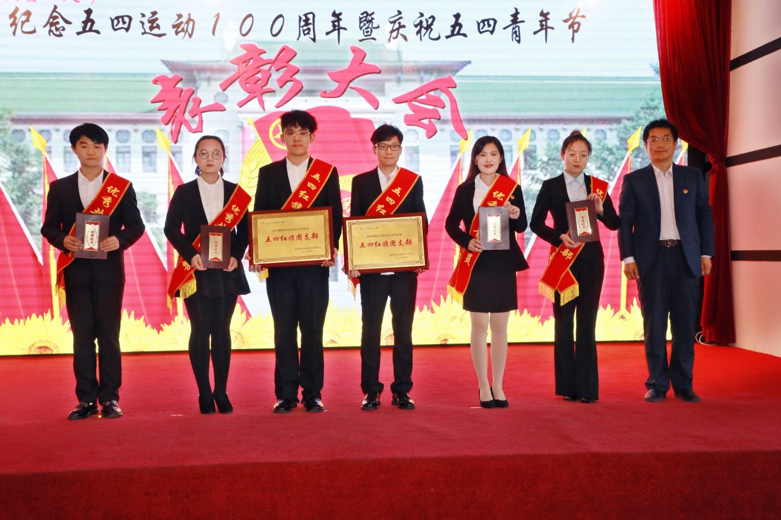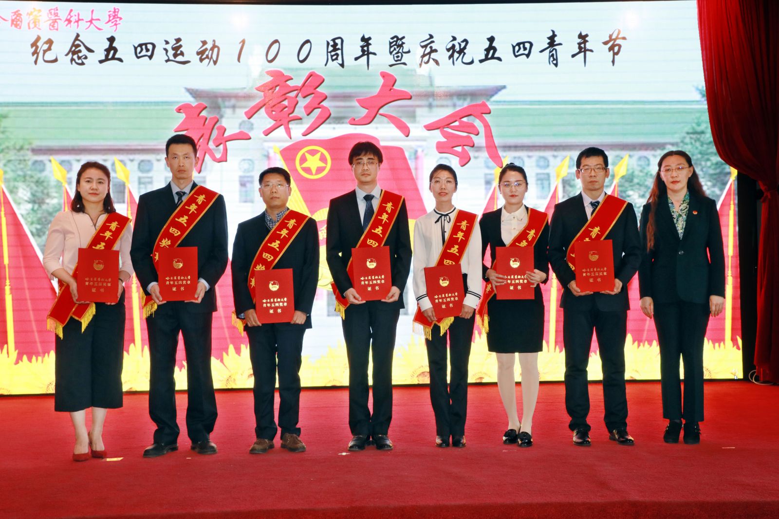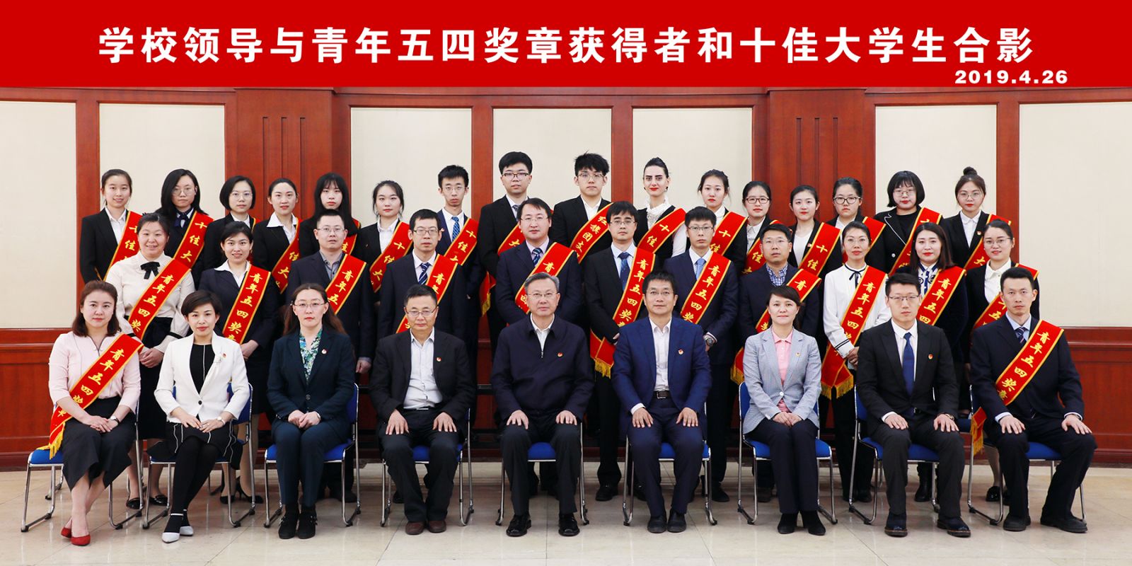 学校领导与青年五四奖章获得者和十佳大学生合影