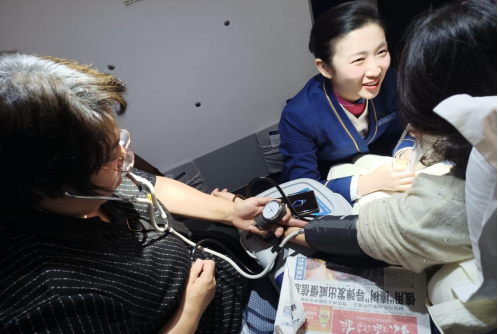 2024年11月的一个周末,周艳娟乘飞机途中,遭遇一名女大学生吞服安眠药轻生的紧急情况。听到机组广播寻医后,她立刻挺身而出参与抢救,沉着冷静地徒手为女孩抠吐,随后持续为女孩提供低流量吸氧、血压监测、人工促醒等救助,直至飞机落地将女孩安全送上120急救车。次日,周艳娟还专程前往医院探望转危为安的女孩,为其购买营养品并开展心理疏导,用专业与温情挽回一条年轻生命。