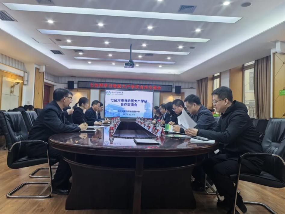 3月18日上午,七台河市科技局局长赫英华、茄子河区姜明书记等一行六人赴哈尔滨医科大学开展产学研合作交流,药学院班涛副院长,药化教研室副主任韩维娜教授,药剂教研室副主任唐景玲教授参加座谈。双方围绕科技创新、成果转化及校企合作展开深入探讨。
