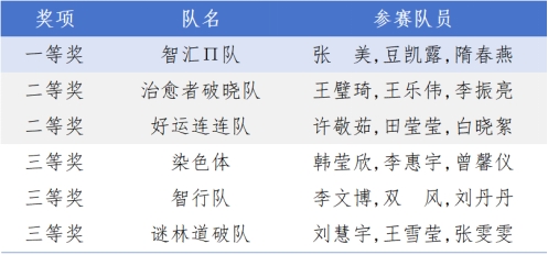 在黑龙江省赛区选拔赛中,“怎样都队”(刘一孝、郑博文、付子珊)斩获黑龙江省一等奖,以本科生组冠军战绩脱颖而出,晋级全国联赛,经过现场激烈角逐,最终获得全国联赛本科生组三等奖,指导教师安妮、冷雪卓获优秀指导教师奖。
