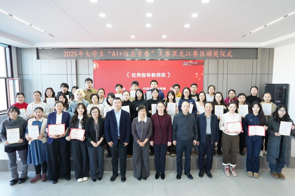 近日,哈尔滨医科大学2025年大学生“AI+信息素养”大赛黑龙江赛区颁奖仪式在图书馆举行。本次大赛由黑龙江省高等学校图书情报工作委员会主办,哈尔滨医科大学图书馆承办。学校党委副书记东梅,党委副书记、工会主席金焰出席颁奖仪式。