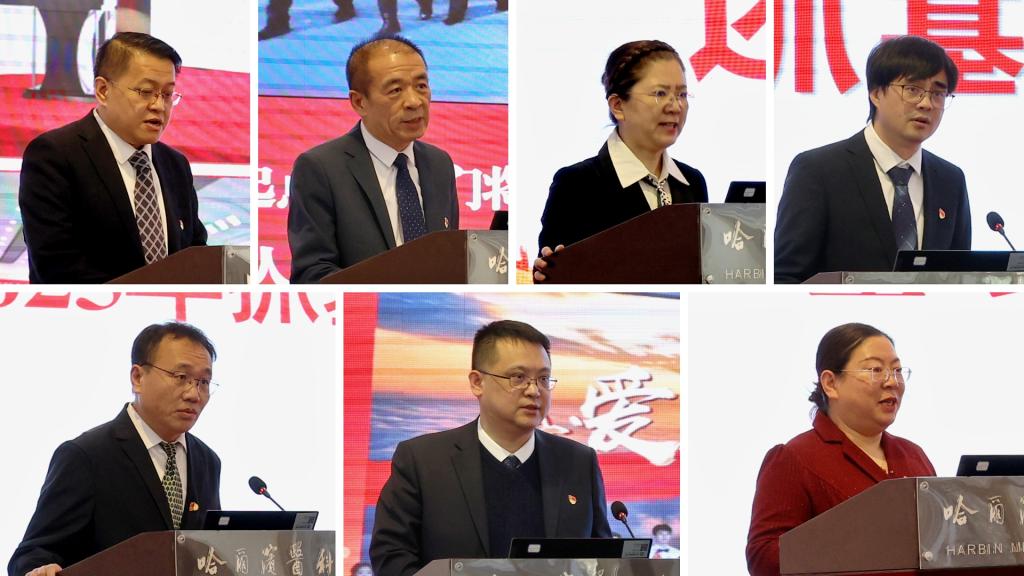 张学在总结讲话中系统回顾了学校全年党建工作取得的成绩,总结了三个显著特点,并围绕做好新时代学校党建工作,以昂扬姿态迎接建校百年华诞,提出了具体要求。一是突出政治统领,坚持以党的政治建设统领新时代党的建设各项工作。要坚持和加强党中央集中统一领导,不断进行革命锻造和斗争淬炼,坚决克服“四风”问题,坚决避免“七个有之”,建设堪当重任的高素质干部队伍。二是加强思想建设,坚持不懈用习近平新时代中国特色社会主义思想凝心铸魂。要用好“四个以学”长效机制,发挥好领导干部领学带学促学作用,持续强化党员干部教育培训工作,全面落实意识形态工作责任制,维护校园安全稳定。三是夯实组织建设,着力增强党组织的政治功能和组织功能。要坚持大抓基层的鲜明导向,发挥好党组织对于事业发展的把关定向监督作用,推动党建和中心工作双向深度融合,以基层党建高质量发展持续引领保障学校事业高质量发展。四是抓实作风建设,不断提升党组织和党员干部的服务能力和水平。要坚持纠“四风”和树新风并举,努力改进思想作风、工作作风、领导作风、干部生活作风,努力改进学风文风会风,优化医风师风,营造风清气正的政治生态和育人环境。五是加强纪律建设和制度建设,坚持以“三不”一体理念方法推进反腐败斗争。全校各级党组织要担负起全面从严治党主体责任,各级纪检监察部门要履行好监督专责,聚焦“关键少数”、敏感岗位、重要事项,确保监督不缺位、不泛化、不虚化、不越位。