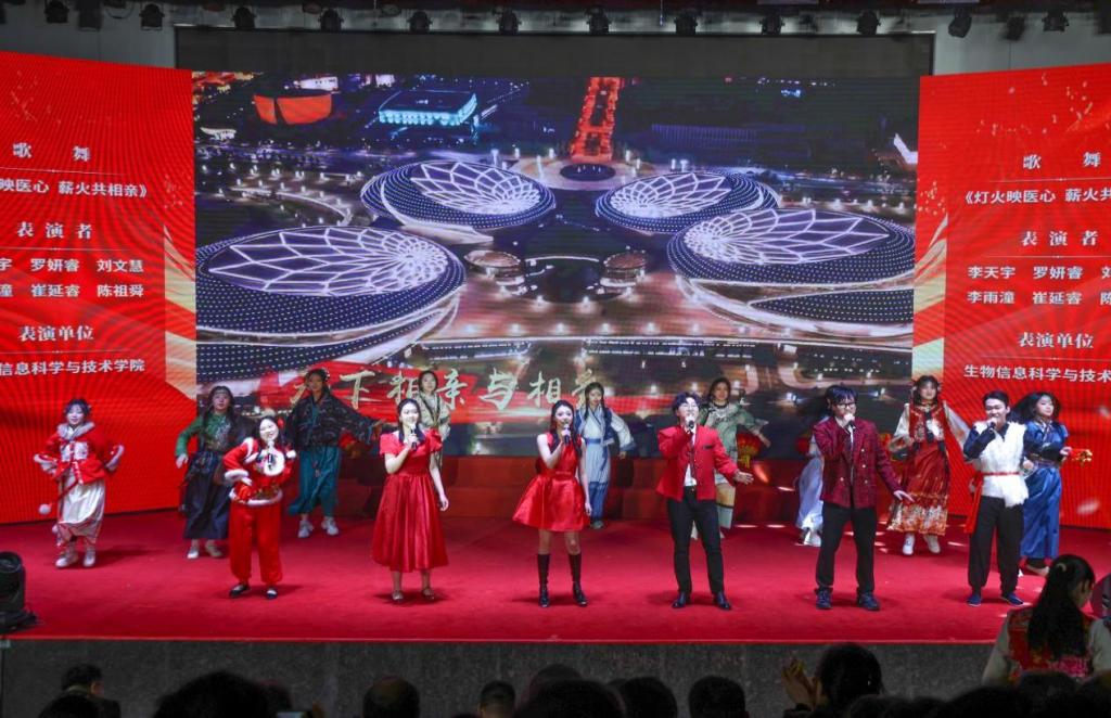 药学院《百年芳华 哈医有我》、地病中心的诗朗诵《有这样一支队伍》、生物信息科学与技术学院的歌伴舞《灯火映医心 薪火共相亲》,深情讴歌了一代代哈医人的使命担当;