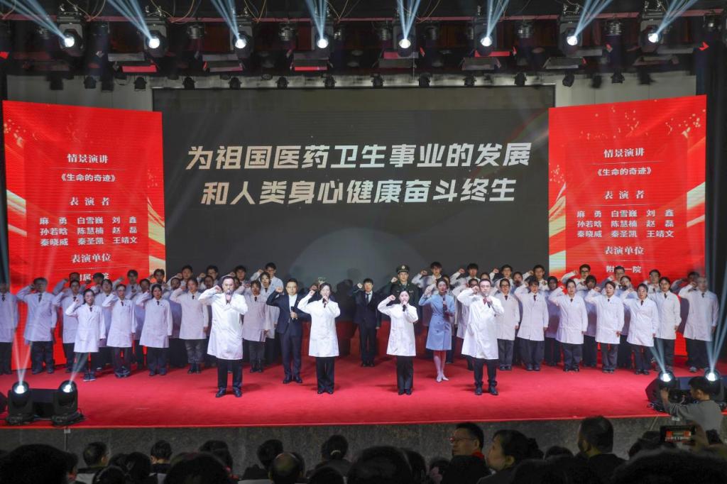 大庆校区的《大医之路》、校直机关美声独唱《爱永在》诠释了“大医精诚”的坚守与传承;