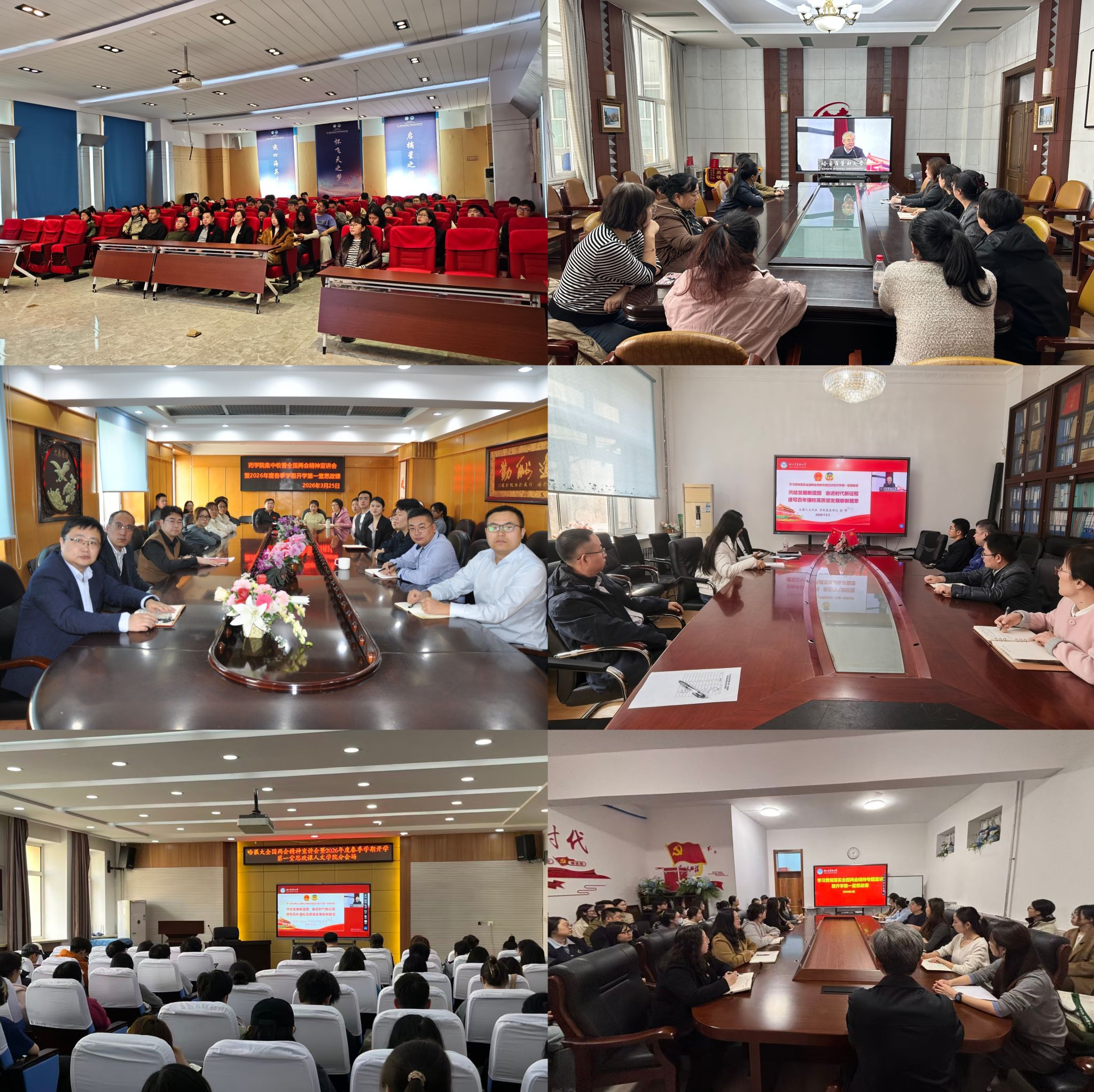 张学深情寄语哈医青年,要满怀豪情、奋勇争先,在民族复兴和强国伟业中书写青春荣光、铸就时代辉煌。同时,他号召全校师生践行“坚持为学生学者办学立校,坚定以学术学风兴学强校”的办学理念,团结奋斗、开拓创新,为推进强国建设、民族复兴伟业作出新的更大贡献。师生们纷纷表示,将以此次专题学习为契机,切实把全国两会精神转化为学习和工作的实际行动,争创“双一流”,锚定新目标,奋力开新局,以实干实绩谱写百年医学强校发展新篇,在新时代新征程中展现新作为作出新贡献。